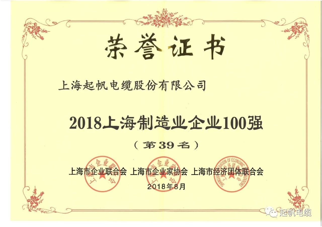 【重大喜讯】2018上海百强企业榜出炉!起帆电缆榜上有名!